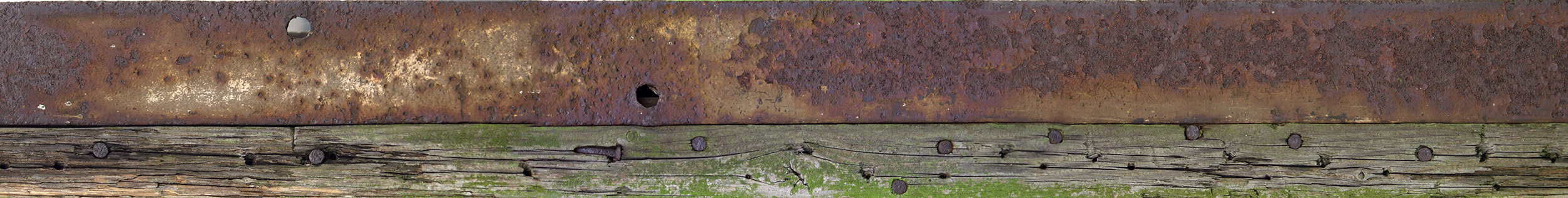 钉在木头上的生锈铁板材质贴图