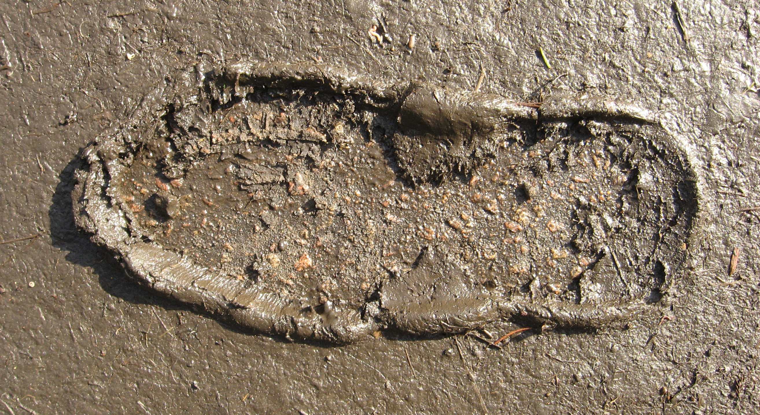 潮湿带有脚印的泥土路面